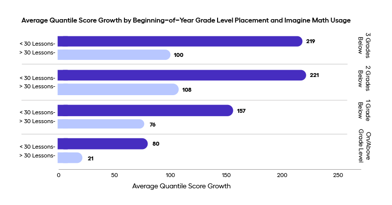 Students who tested far below grade level showed the most substantial Quantile score growth after a year of using Imagine Math.